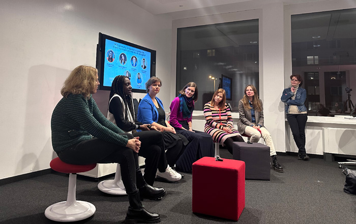Paneldiskussion: Christiana Bukalo – Co-Founder, Statefree, Katrin Baumann – Senior Director EMEA Integrated Marketing and Diversity & Inclusion Leader, Adobe und Liudmyla Rabchynska – Executive Consultant, CGI, OECD Consultant, Former Deputy Minister – Ministry of Digital Transformation of Ukraine im Gespräch mit Britta Muzyk-Tikovsky – Managing Director Capscovil und Gründerin der Initiative Diversity Natives.
